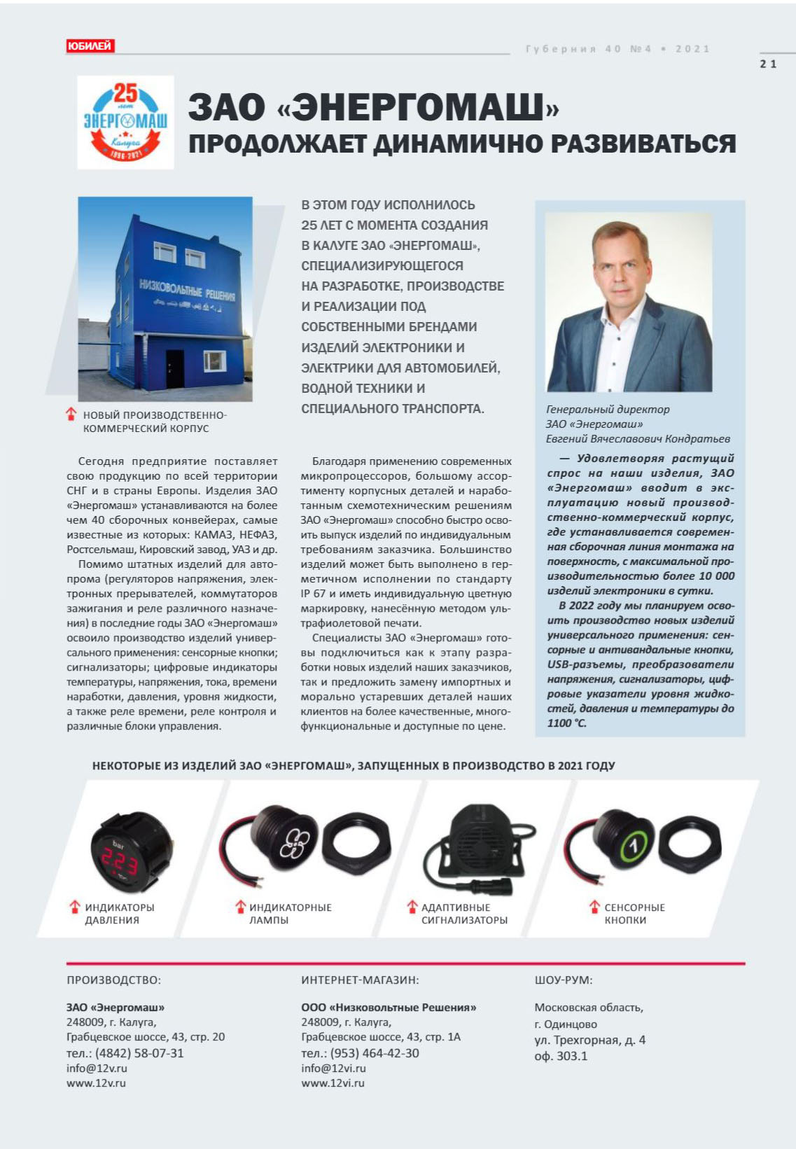 «ЗАО «Энергомаш» продолжает динамично развиваться», журнал «Губерния 40» №4 2021