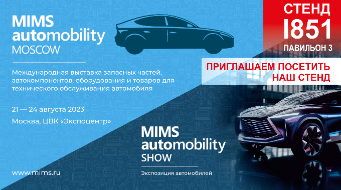 С 21 по 24 августа наша компания принимает участие в Международной выставке запасных частей, автокомпонентов, оборудования и товаров для технического обслуживания автомобиля MIMS Automobility Moscow RUS.