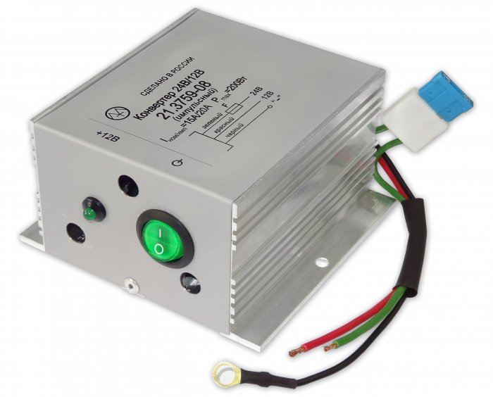3. Соединить провод «+24В» (зеленый) конвертера с выводом «+24В» транспортного средства, используя провод сечением не менее 1,5мм².
