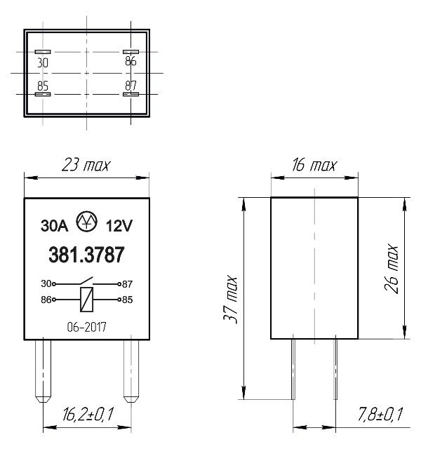| Габаритные размеры реле, мм | 37х23х16 |