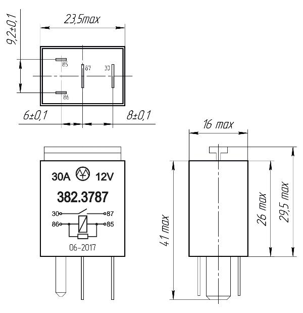 | Габаритные размеры реле, мм | 41х23,5х16 |