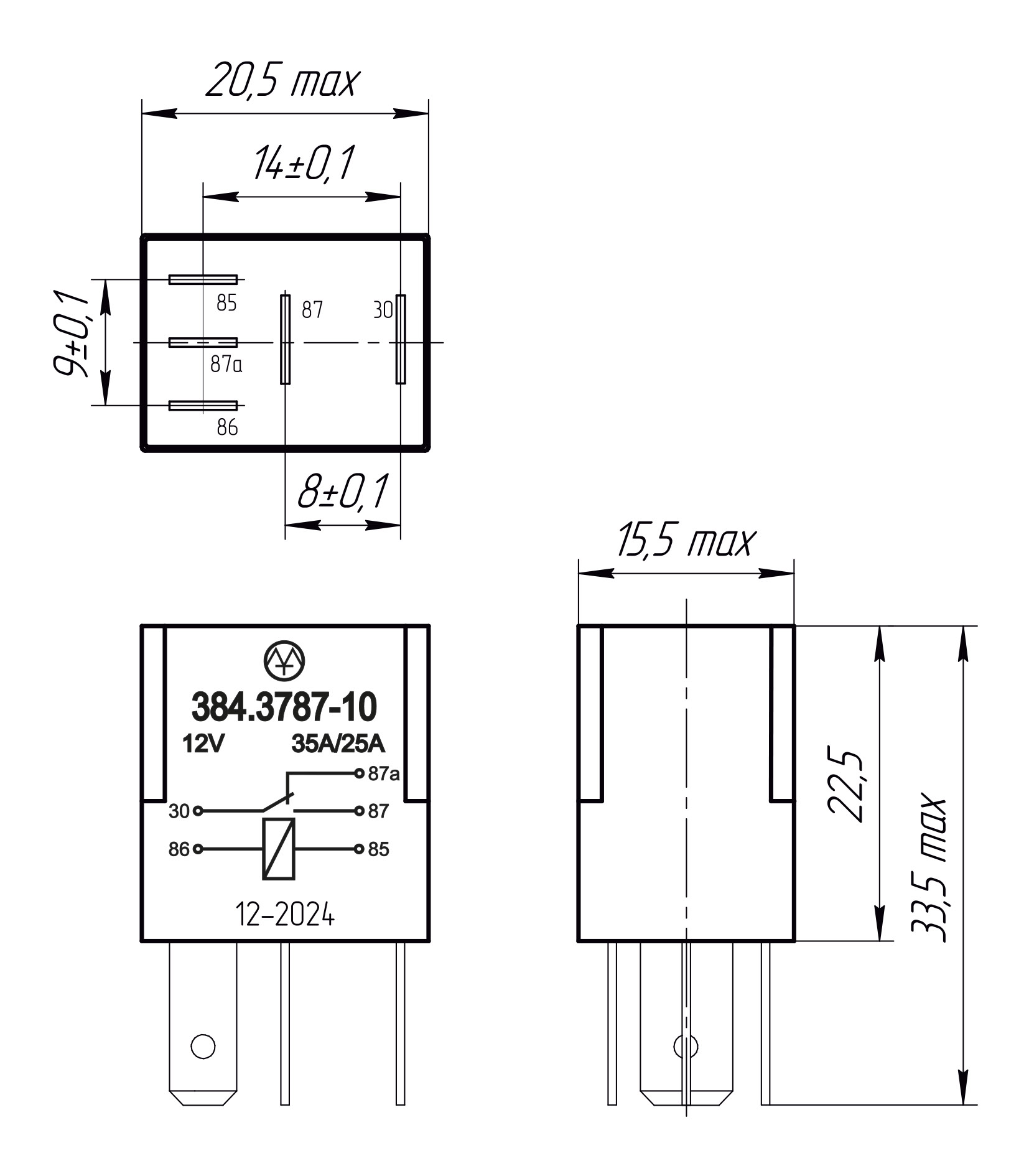 | Габаритные размеры реле, мм | 33,5х20,5х15,5 |