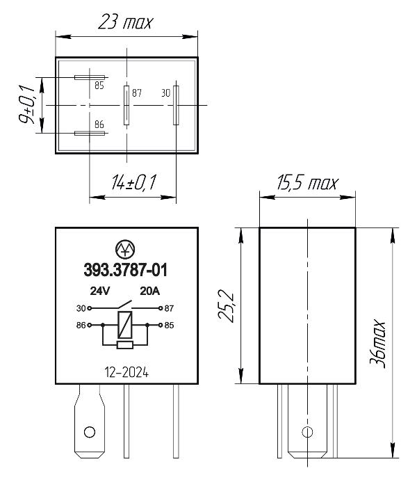 | Габаритные размеры реле, мм | 36х23х15,5 |