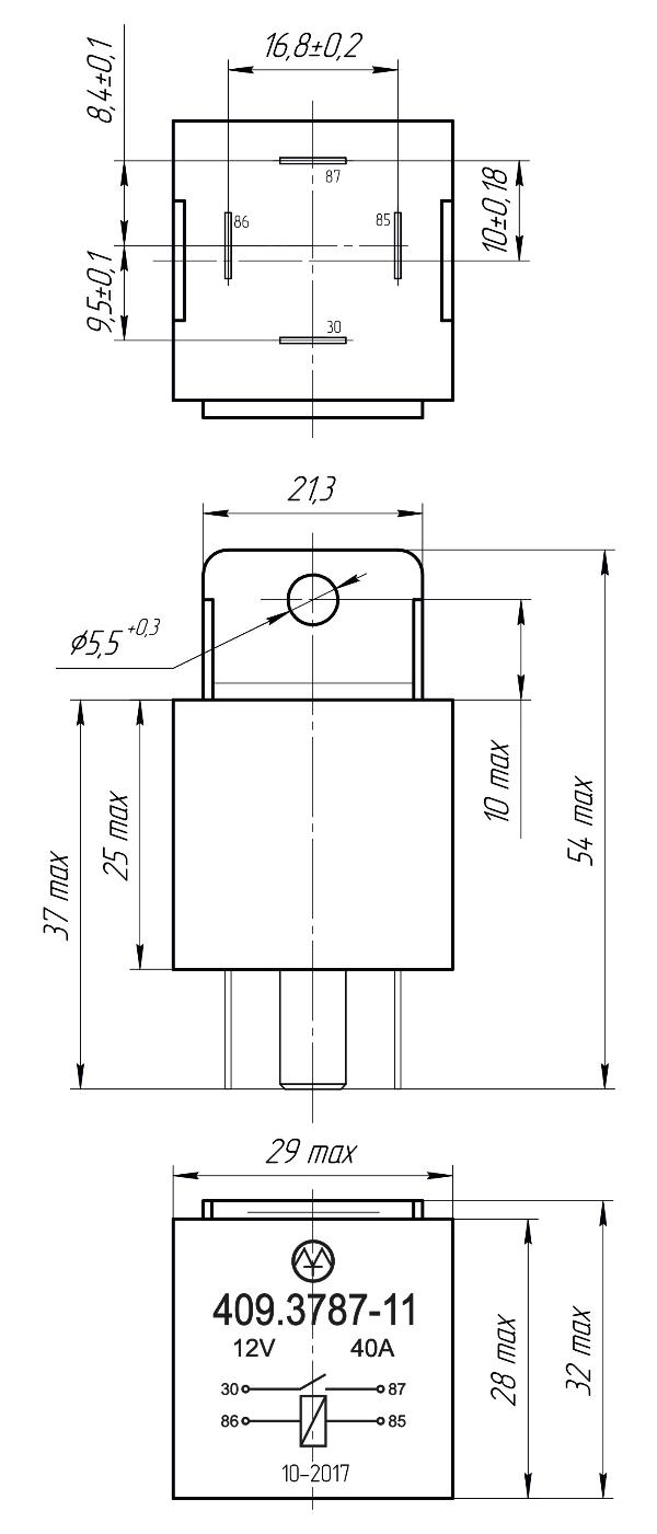 2. При монтаже на кузов, колодку с подводящими проводами надежно соединить с контактами реле.