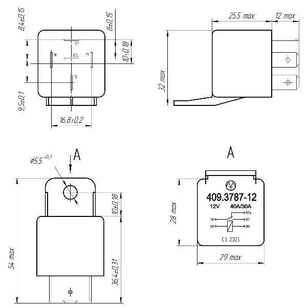 2. При монтаже на кузов, колодку с подводящими проводами надежно соединить с контактами реле.
