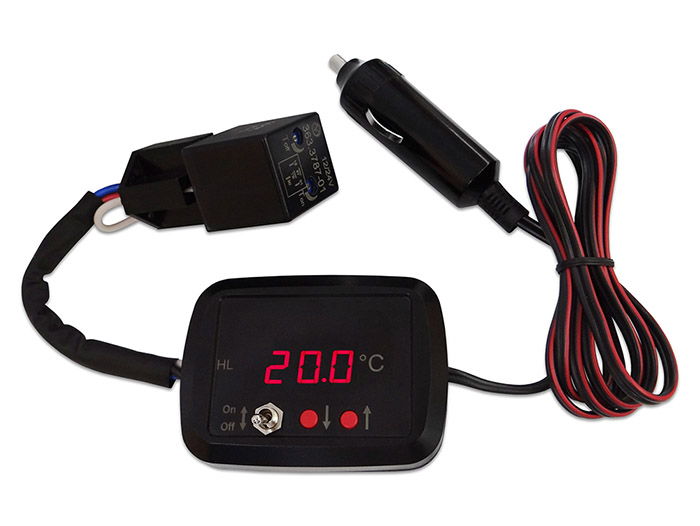 Приспособление представляет собой изделие с колодкой для установки проверяемого реле, светодиодными индикаторами температуры «ºС» и срабатывания реле «HL», тумблером включения «ON – OFF», кнопками установки температуры «↑», «↓» включения и отключения реле и штекером для подключения к источнику питания: