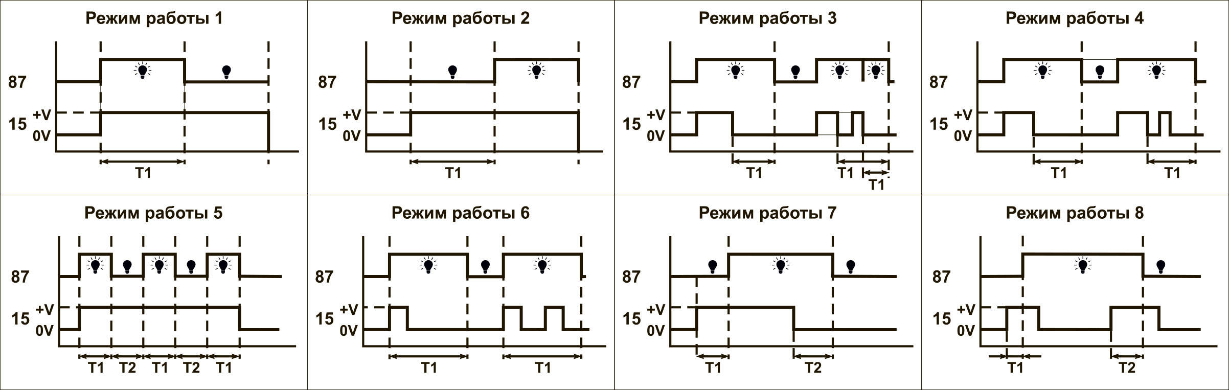 В реле предусмотрены функции выбора единиц отсчета времени (с, мин, ч), выбора режима работы и установки времени работы. Установка режимов и времени осуществляется с помощью кнопки через отверстие в корпусе реле.