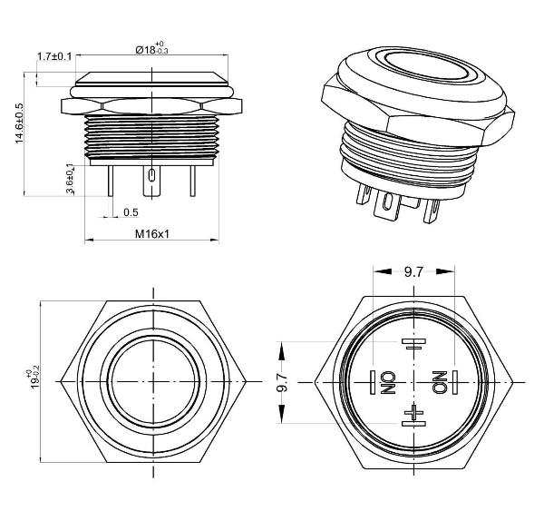 Переключатель кнопочный ПК-16А-К (замыкающий)