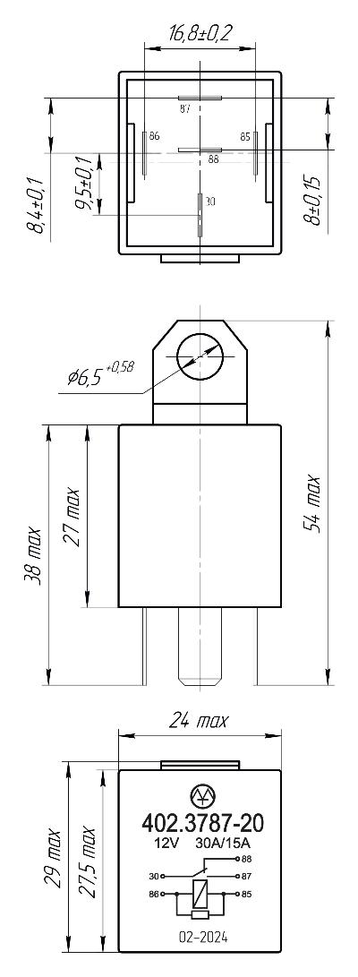 2. При монтаже на кузов, колодку с подводящими проводами надежно соединить с контактами реле.
