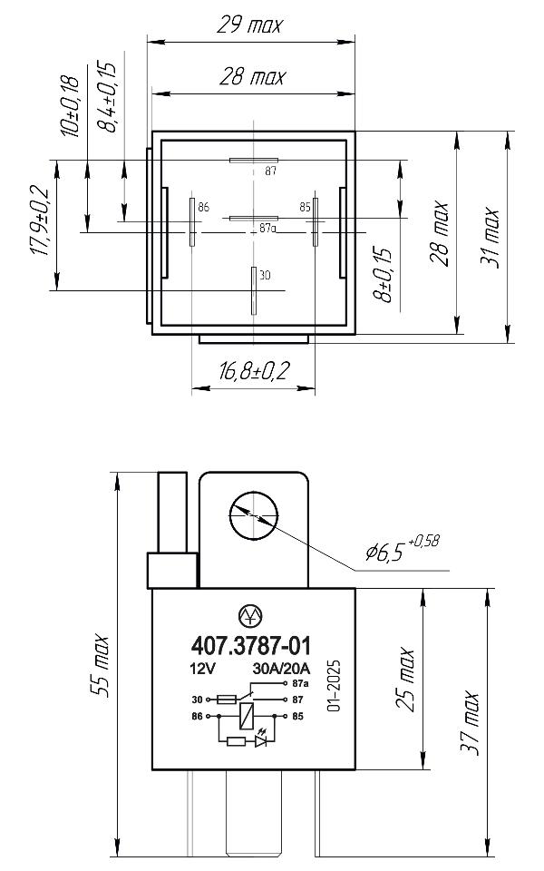 407.3787-01 12В 30А/20А 5-ти контактное с резистором, предохранителем и светодиодом